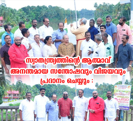 സ്വാതന്ത്ര്യത്തിൻ്റെ ആത്മാവ് അനന്തമായ സന്തോഷവും വിജയവും പ്രദാനം ചെയ്യുമെന്ന് ബിഷപ്പ് തോമസ് കെ ഉമ്മൻ പ്രസ്താവിച്ചു. ഇന്ത്യയുടെ 78-ാം സ്വാതന്ത്ര്യ ദിനാഘോഷങ്ങളുടെ ഭാഗമായി പമ്പാ ബോട്ട് റേസ് ക്ലബിന്റെ ആഭിമുഖ്യത്തിൽ ഉത്രാടം തിരുനാൾ പമ്പ ജലോത്സവം സമിതി സംഘടിപ്പിച്ച സ്വാതന്ത്യദിന പരിപാടിയിൽ പതാക ഉയർത്തൽ കർമ്മം നിർവഹിച്ചു സംസാരിക്കുകയായിരുന്നു സിഎസ്ഐ സഭ മുൻ മോഡറേറ്റർ ബിഷപ്പ് തോമസ്. കെ. ഉമ്മൻ. വർക്കിംഗ് പ്രസിഡണ്ട് വിക്ടർ ടി തോമസ് അധ്യക്ഷത വഹിച്ചു. വൈസ് പ്രസിഡണ്ട്മാരായ പി രാജശേഖരൻ തലവടി, […]